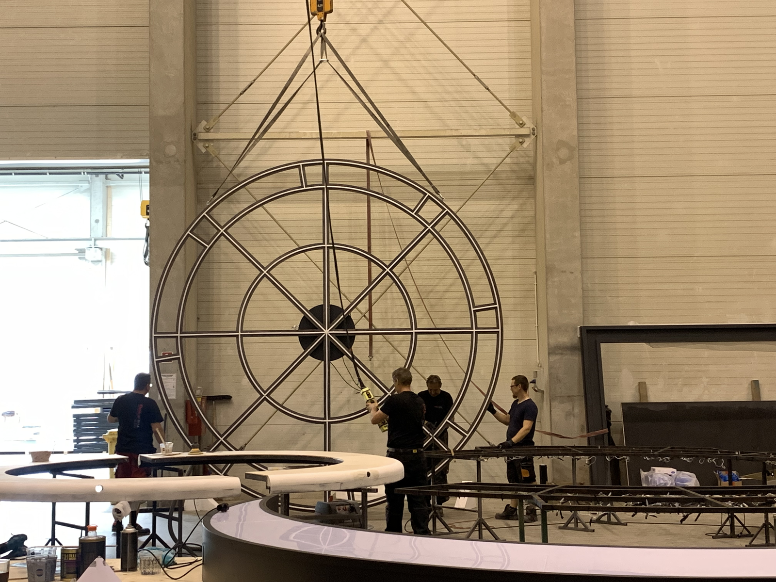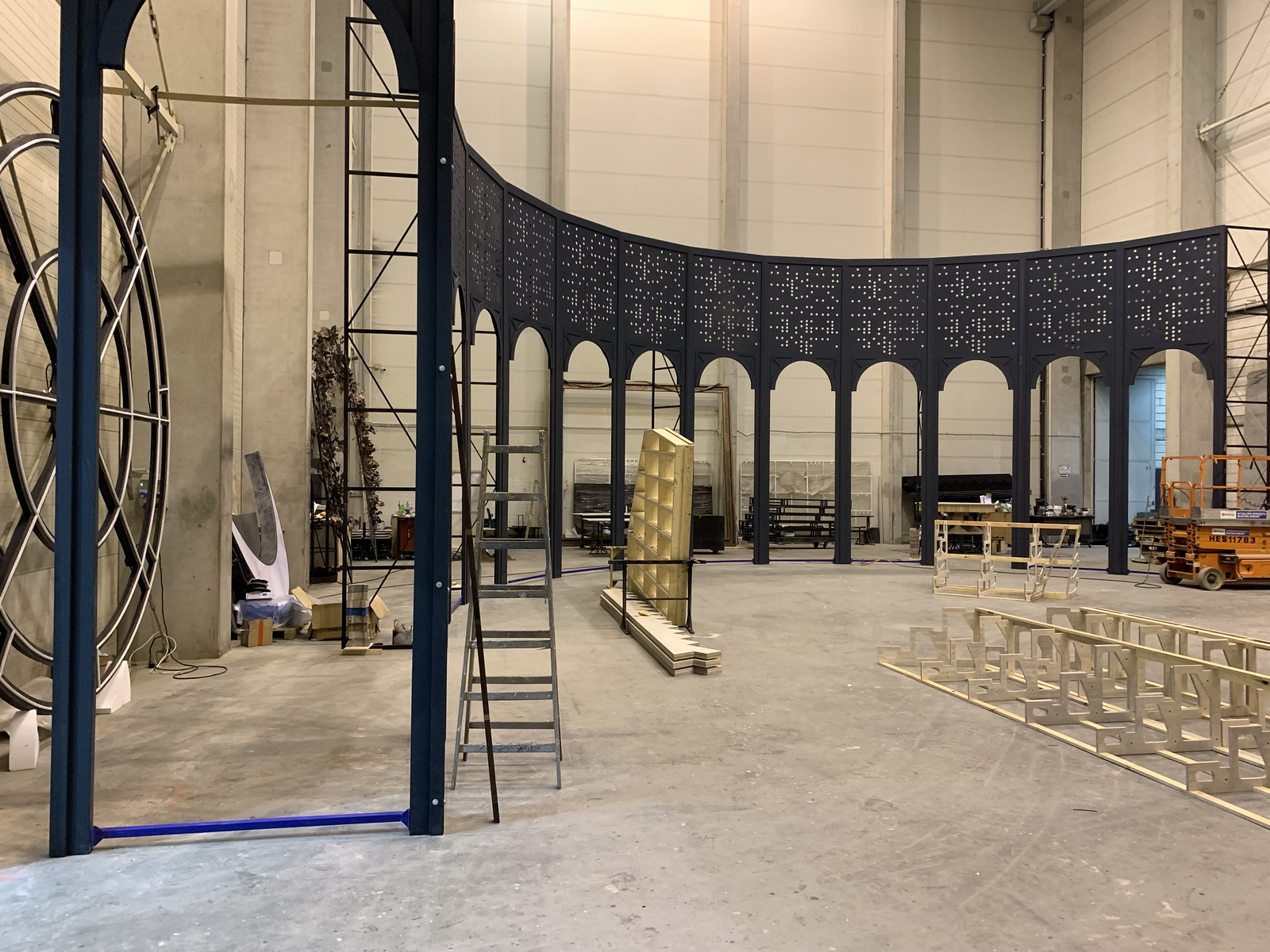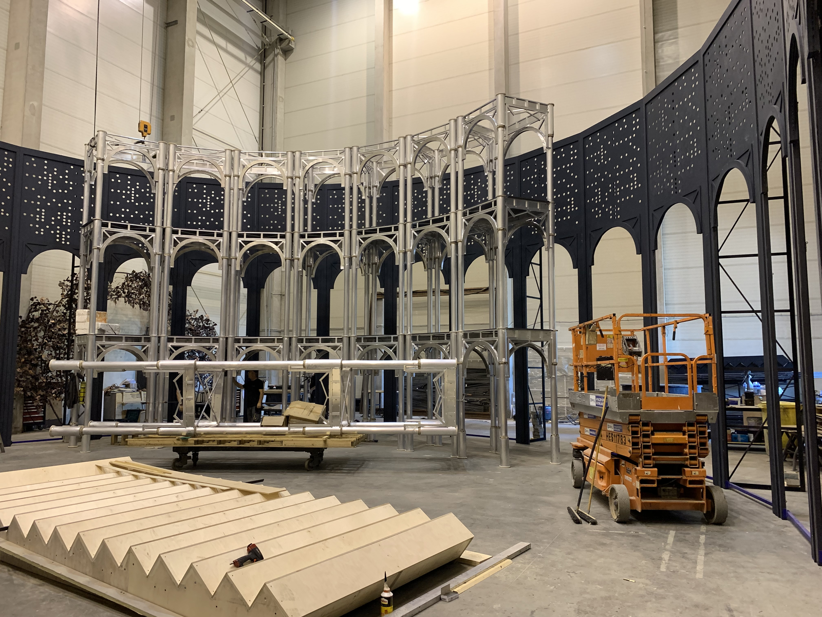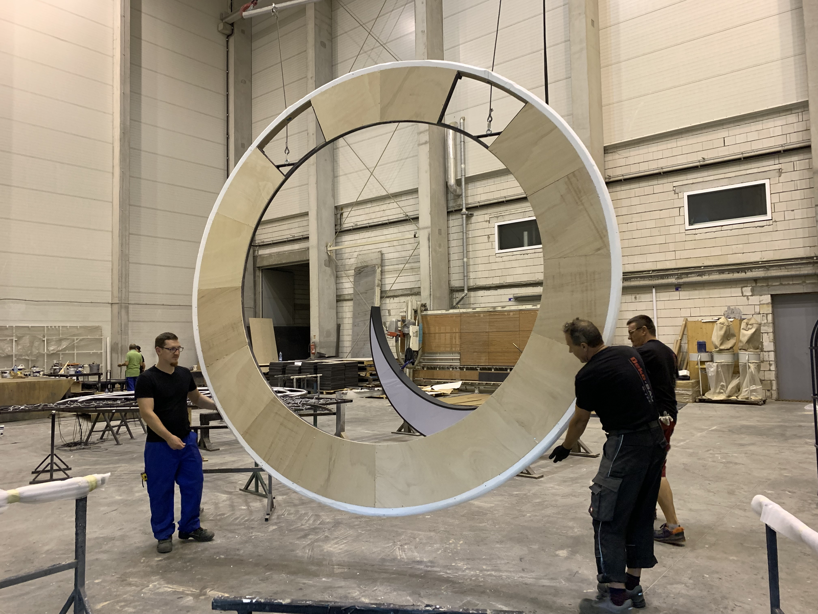 W tej chwili jesteśmy mniej więcej na półmetku prób scenicznych i choreograficznych, natomiast już w połowie listopada mieliśmy zamknięty etap projektowania scenografii. Etap koncepcyjno-projektowy musi być zakończony dużo wcześniej, zanim rozpoczną się próby. Obecnie wszystko jest w procesie wykonawczym. Po całym etapie koncepcyjnym, po obrazowaniu, opracowywaniu technicznym i konstrukcyjnym. Dziś scenografia jest po prostu budowana. Jesteśmy w takim momencie, w którym oczekujemy na finalny produkt. Czekamy na montaż, który odbędzie się w pierwszych dniach marca.